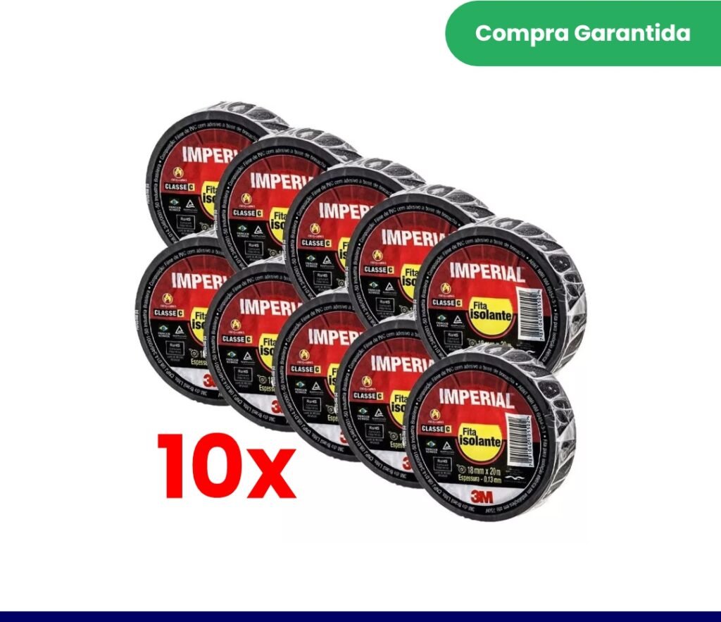 Kit 10 Rolos Fita Isolante 3M Imperial 10 Metros